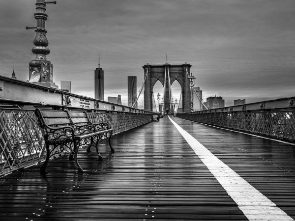 Un ponte di New York in bianco e nero. Combinate questa carta da parati con foto nella vostra casa per un'atmosfera ancora maggiore.
