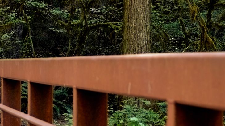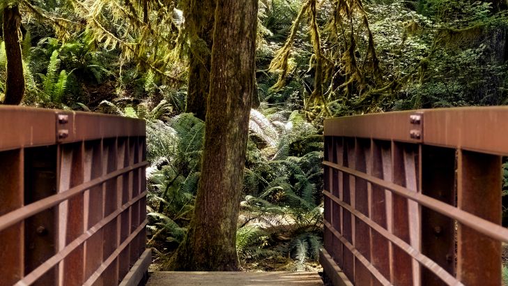 Bella immagine di un ponte d'acciaio in mezzo alla foresta