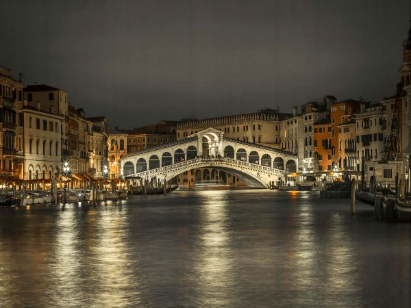 Il ponte di Rialto fotografato di sera. Combinate questa carta da parati fotografica nella vostra casa.