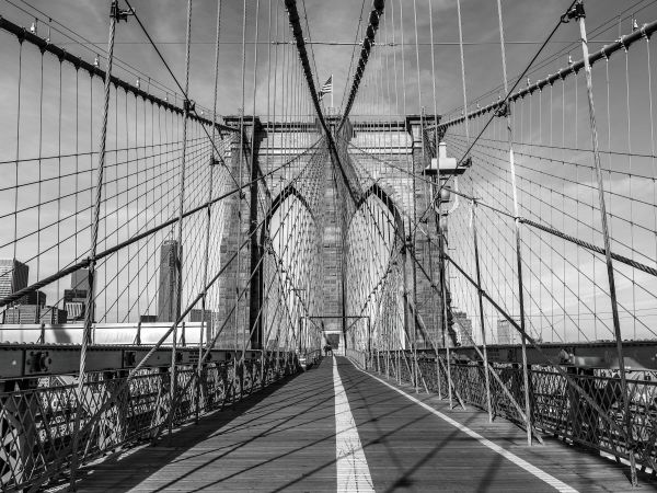 Un ponte di New York in bianco e nero. Combinate questa carta da parati con foto nella vostra casa per un'atmosfera ancora maggiore.