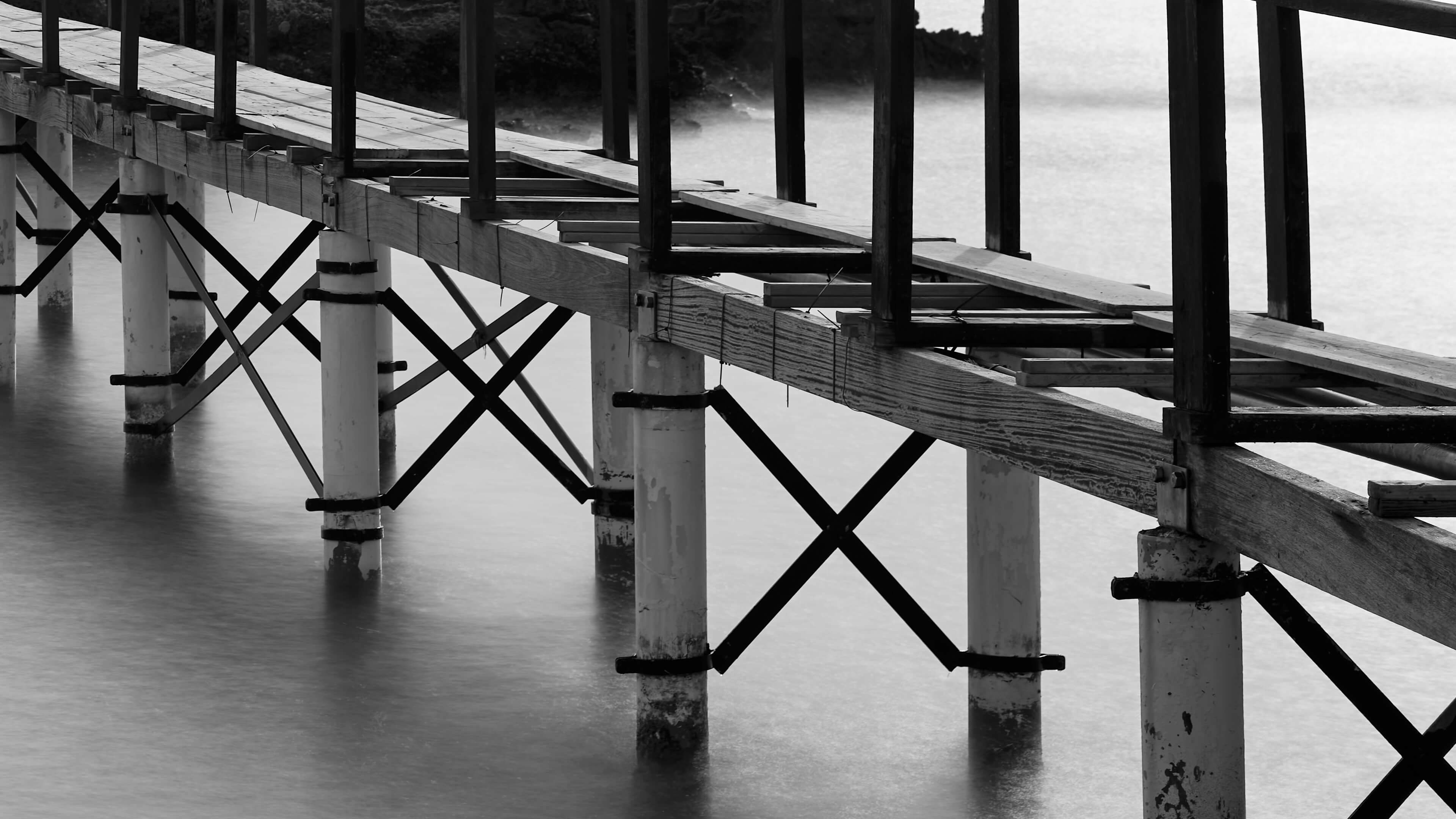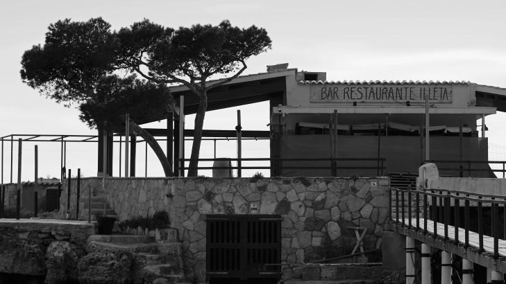 Molo stretto verso un piccolo ristorante su un'isola