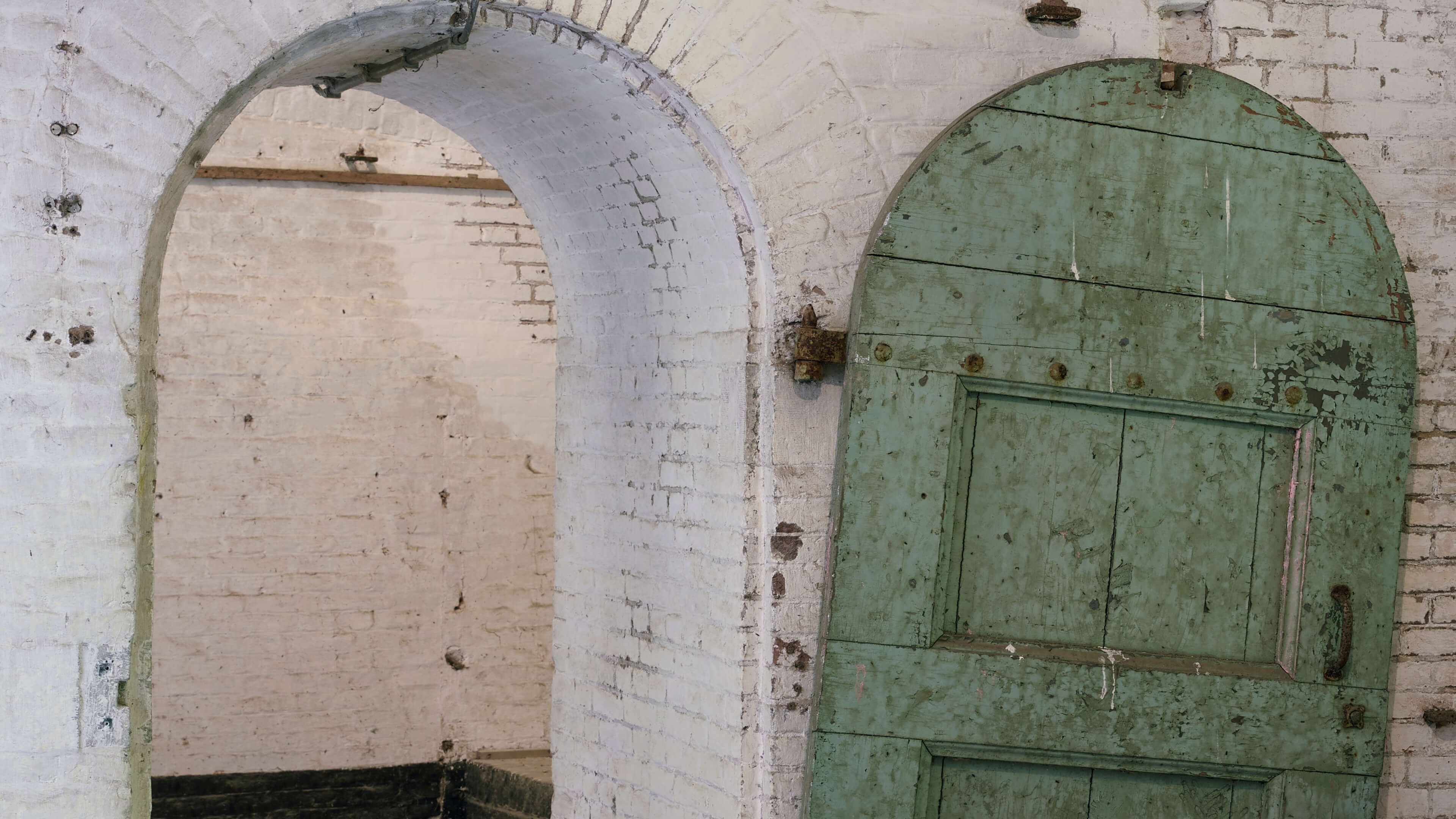 Porta verde in un vecchio edificio. Con questa carta da parati fotografica nella tua casa, è come se tu stesso potessi entrare in questo edificio.
