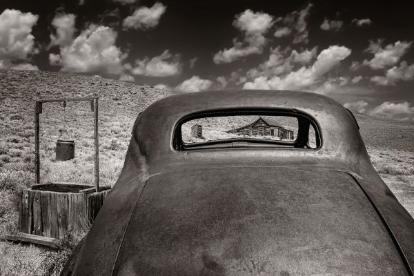 Carta da parati fotografica in bianco e nero di una casa isolata. Combinatelo, ad esempio, in camera da letto.