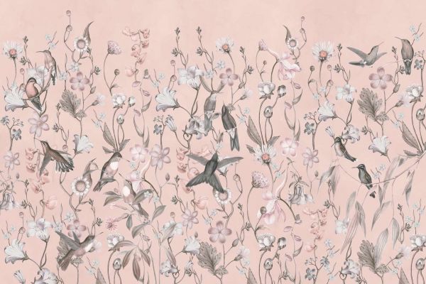 Un design vivace con fiori delicati e colibrì eleganti, armoniosamente intrecciati in una composizione leggera. Questo motivo emana un raffinato fascino naturale e porta un'atmosfera fresca e primaverile in ogni ambiente.