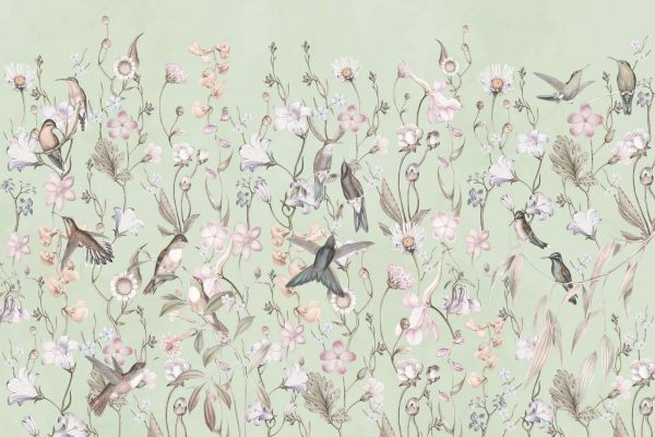 Un design vivace con fiori delicati e colibrì eleganti, armoniosamente intrecciati in una composizione leggera. Questo motivo emana un raffinato fascino naturale e porta un'atmosfera fresca e primaverile in ogni ambiente.