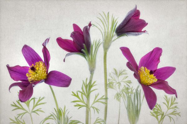 Pulsatilla è stato creato da Mandy Disher. Con questi bei fiori viola, la vostra casa è completa.