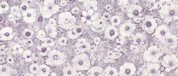 Un campo di fiori romantico e monocromatico con delicate tonalità di rosa che conferiscono un tocco morbido e sognante ai papaveri e ai fiori selvatici. Le sottili transizioni di colore creano un aspetto affascinante, quasi nostalgico.