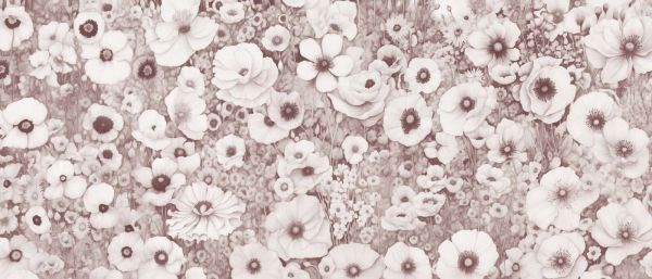 Una lussuosa interpretazione del campo di fiori monocromatico, con sottili tonalità di vino che avvolgono i papaveri e i fiori selvatici in un caldo ed elegante bagliore. La miscela di tonalità rosse profonde e morbide sfumature di grigio aggiunge un tocco di drammaticità.