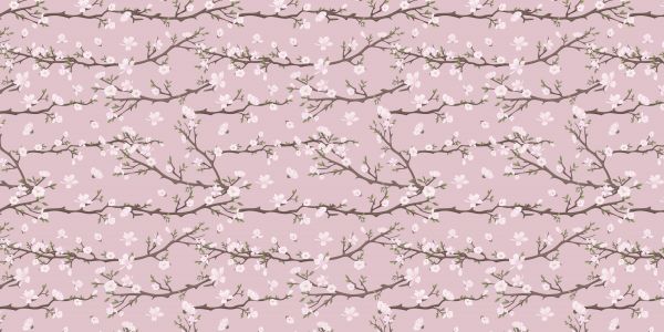 Un motivo di rami primaverili su uno sfondo rosa chiaro.