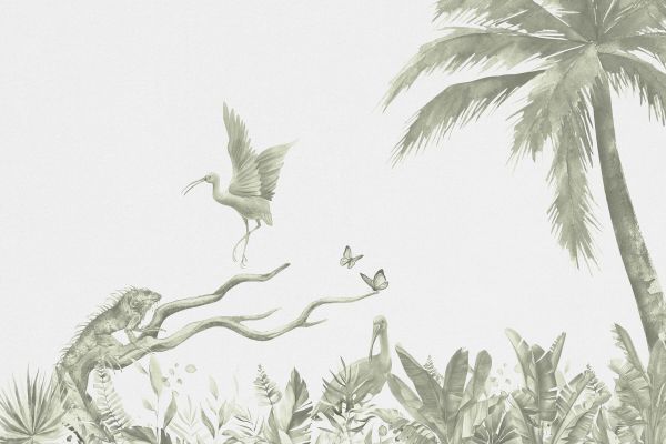 Carta da parati - Ramo con animali della giungla in verde