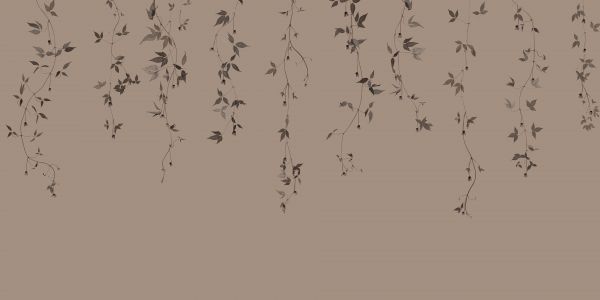 Ramoscelli di clematide su sfondo tortora. Colore ispirato al colore di tendenza Brave ground.