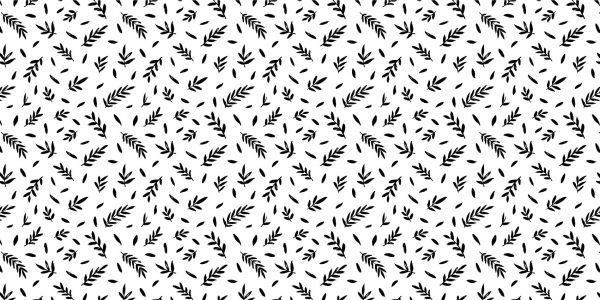 Carta da parati bianca con un motivo pieno di diversi ramoscelli neri.