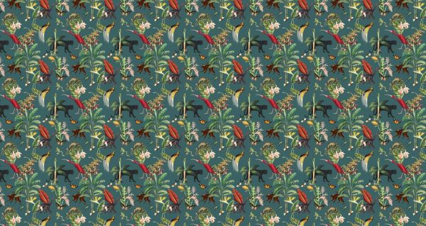 Questo design ti immerge in una giungla esotica piena di dettagli vivaci. Pappagalli, scimmie e farfalle si muovono tra lussureggianti piante tropicali e fiori, mentre la ricca tonalità verde di sfondo amplifica l'energia naturale della foresta pluviale. Accenti di rosso, giallo e arancione brillanti conferiscono all'insieme un aspetto dinamico e giocoso che ricorda avventure nel profondo dei tropici. Puoi abbinare perfettamente questo motivo a materiali naturali come rattan, bambù e legno chiaro per un interno che evoca un'atmosfera tropicale. Per un contrasto più moderno, puoi lavorare con mobili scuri e accessori in nero o antracite, che fanno risaltare ulteriormente i colori vivaci del design. Aggiungi cuscini o plaid in tonalità coordinate per rendere lo spazio ancora più armonioso. Questo design è particolarmente adatto per spazi giocosi come una cameretta, una serra o un soggiorno dove desideri creare un'atmosfera avventurosa e vivace. Il motivo porta la bellezza e la diversità della foresta pluviale all'interno e invita a sognare destinazioni lontane. Una scelta che è sia energica che stilosa, perfetta per chi ama il colore e la natura.
