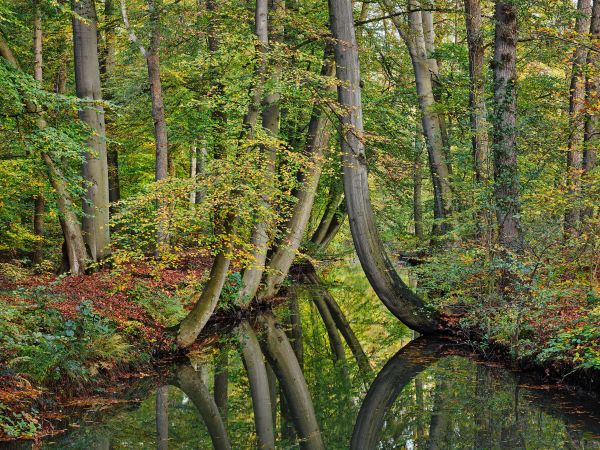 Riflesso di alberi piegati