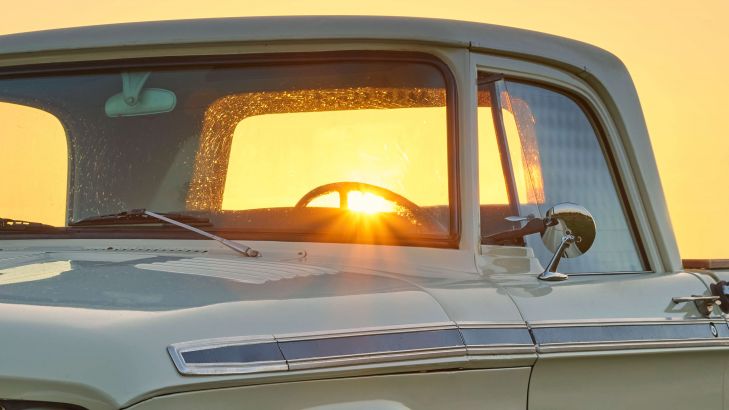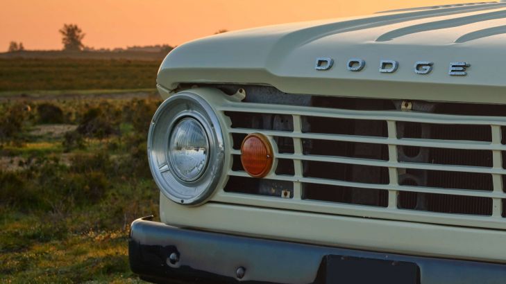 Pick-up Tough Dodge all'alba, fotografato al mattino presto nella brughiera