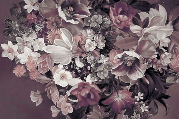 Questo incantevole design floreale combina tonalità calde e nostalgiche con un aspetto classico e pittorico. I colori tenui di rosa antico, crema e prugna si mescolano armoniosamente con accenti grigio-verdi sottili, creando un insieme rilassante e raffinato. Lo sfondo scuro fa risaltare ulteriormente i fiori e aggiunge un tocco di profondità e mistero. Grazie alla calda e romantica palette di colori, questo design è ideale per un interno classico o vintage. Si combina splendidamente con mobili in legno nelle tonalità naturali o bianche, accessori eleganti in ottone o rame e tessuti morbidi come velluto e lino. Per un interno moderno, questo design può costituire un raffinato contrasto in combinazione con linee pulite e colori neutri come taupe o antracite. Le tonalità armoniose e morbide rendono questo design perfetto per spazi suggestivi come la camera da letto, il soggiorno o una sala da pranzo chic. I colori profondi e caldi creano un'atmosfera accogliente e invitante, mentre i motivi floreali conferiscono un tocco romantico e senza tempo. Per un aspetto ancora più raffinato, accessori in tonalità oro o bronzo possono rafforzare l'atmosfera di lusso e vintage. Questo design floreale senza tempo porta un senso di eleganza e calore in ogni interno e costituisce una base stilosa per uno spazio accogliente e di gusto.