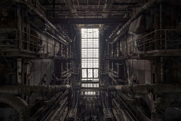 Un locale caldaia abbandonato su carta da parati fotografica. Combina questa carta da parati fotografica nella tua casa e crea un'atmosfera industriale a casa tua.