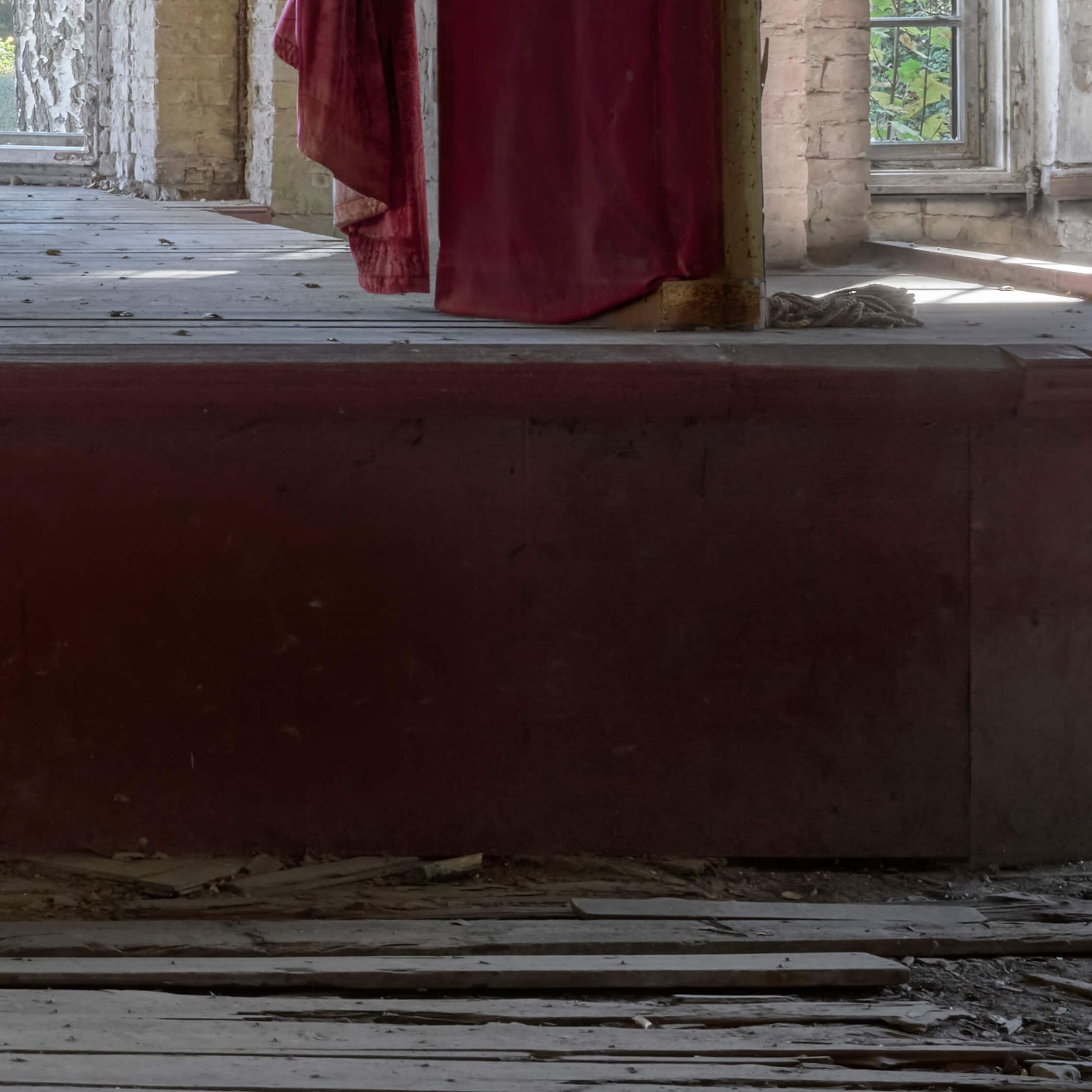 Un pianoforte in un vecchio sanatorio. Aggiungi profondità alla tua stanza con questa carta da parati fotografica.