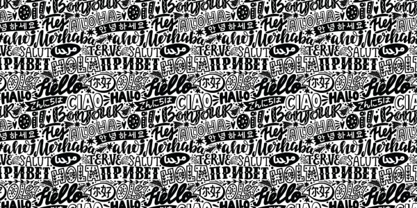 Allegro motivo in bianco e nero con testi di scarabocchi.