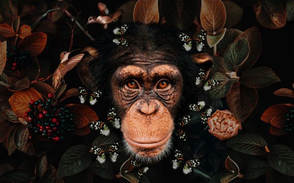 Tropical Chimpanzee dà ad ogni stanza un look unico. Questa carta da parati farà uscire lo scimpanzé dal muro.