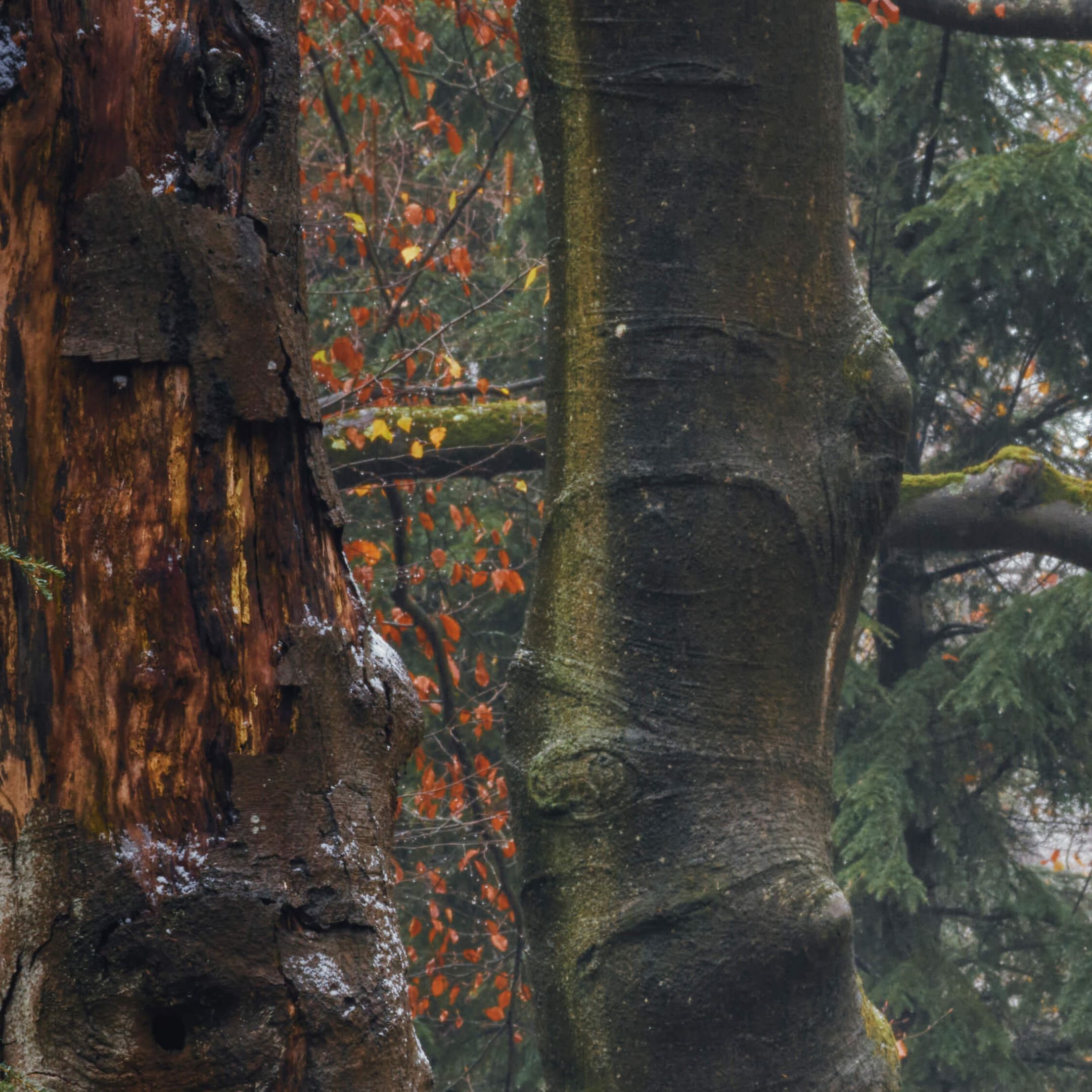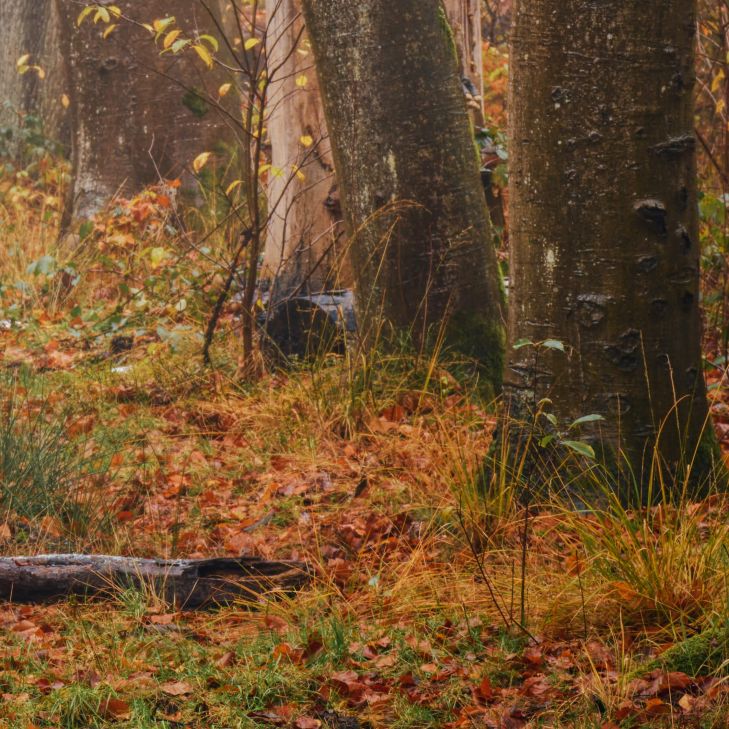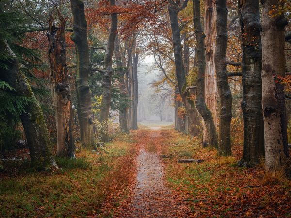 Sentiero forestale con alberi secolari in diversi materiali