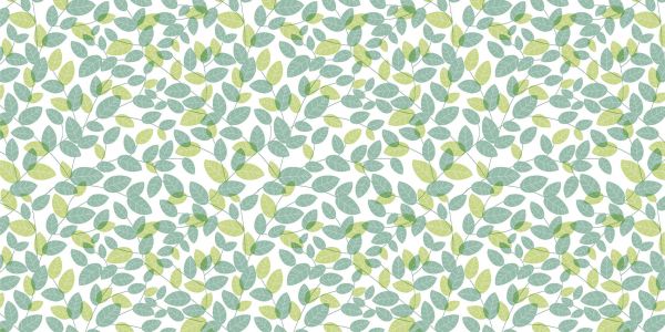 Carta da parati con un disegno di foglie verde chiaro e verde scuro sovrapposte su sottili rami.