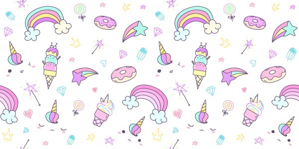 Carta da parati con sfondo di unicorno, arcobaleni e stelle. Da abbinare alla cameretta dei bambini.
