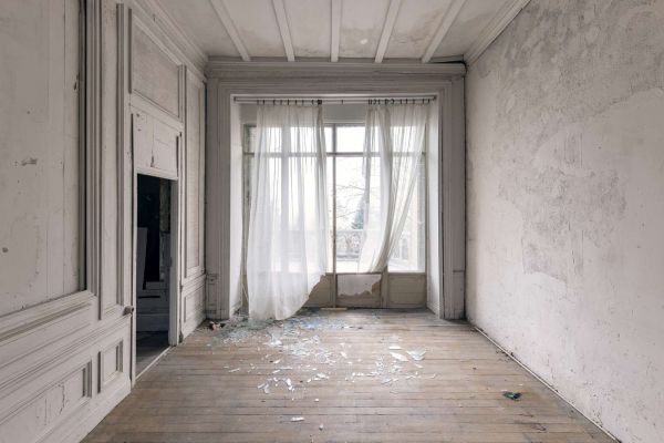 L'ex sala degli specchi di un castello abbandonato in Francia. Il giorno della nostra visita c'era un silenzio inquietante. Questo edificio ha avuto una storia movimentata. È stato una residenza privata, un ospedale militare durante la Prima Guerra Mondiale, un sanatorio e infine un centro di formazione prima di essere completamente abbandonato circa 15 anni fa.
