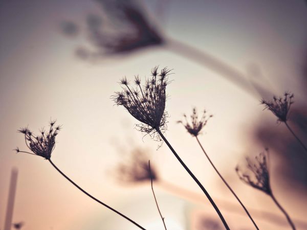 Una bella silhouette di piante in un campo dove il sole è appena tramontato.
