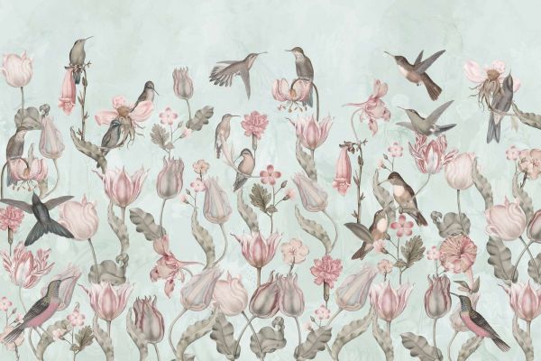 Carta da parati - Sinfonia di Colibrì Primaverile - Prato di Menta