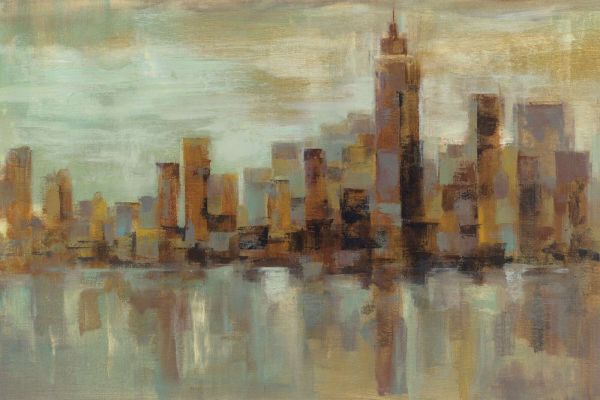 L'immagine mostra un'interpretazione impressionistica di un panorama urbano sull'acqua, con grattacieli astrattamente rappresentati in tonalità calde di rame, ocra, marrone ruggine e azzurro chiaro. Gli edifici sfumano delicatamente nell'aria e si riflettono nell'acqua, creando un'immagine rilassante e dinamica allo stesso tempo. I pennellate sono grossolane ed espressive, conferendo all'insieme un carattere artistico e stratificato. Questo disegno si adatta perfettamente a un interno industriale dove il carattere grezzo del mattone, del metallo e del legno si sposa bene con i colori terrosi e la texture del design. Anche in un interno moderno e minimalista, quest'opera trova il suo posto, dove può fungere da punto focale contro una parete liscia in grigio chiaro o color sabbia. Abbinare il design a mobili in materiali naturali come legno invecchiato, pelle o accenti metallici nero opaco. Gli accessori in rame o ottone rafforzano le tonalità calde, mentre tende leggere o tessuti morbidi in beige o grigio-azzurro mantengono l'atmosfera ariosa. I principali schemi di colore sono tonalità calde di rame e ruggine, combinate con fresco acquamarina, turchese chiaro e beige sbiadito. Questo equilibrio tra caldo e freddo conferisce all'insieme un'atmosfera armoniosa. Il motivo è astratto, con una struttura di pennellate chiaramente visibile e un ritmo di edifici a forma di blocchi che suggeriscono profondità e movimento. Questo design si presta perfettamente a spazi in cui la tranquillità e l'atmosfera sono al centro, come un soggiorno, uno studio domestico, un loft o persino una lobby di hotel elegante. Grazie al suo carattere stratificato e senza tempo, trasmette sia eleganza che modernità.