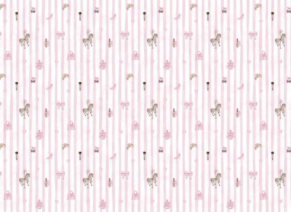 Porta fantasia e dolcezza insieme nella nostra nuovissima collezione per la cameretta delle ragazze. Questa carta da parati dal design unico è un vero gesto d'amore, dove le parole servono per sognare ad occhi aperti. Pensa a una striscia giocosa abbinata a dolci illustrazioni: un cavallino da giostra carino, un croissantino e accenti di trucco. Tutto realizzato in tonalità di rosa, dal rosa cipria al rosa pastello chiaro, rifinito con graziosi fiocchetti per quella autentica sensazione di cameretta da ragazze.