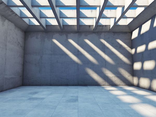 Spazio vuoto in cemento armato con tetto quadrato aperto