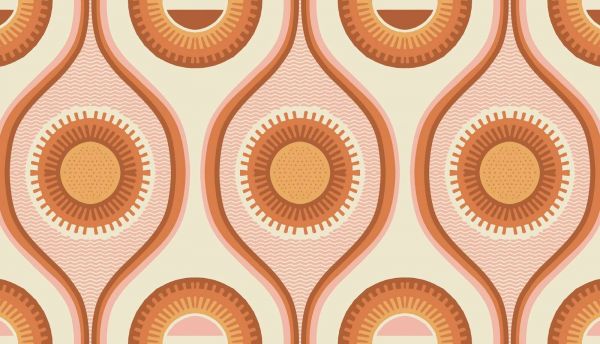 Questo design accattivante combina il fascino retrò con colori caldi e solari che evocano immediatamente un'atmosfera allegra ed energica. Al centro ci sono motivi solari rotondi composti da anelli concentrici in tonalità come terracotta, albicocca, giallo sabbia e rosa cipria. I cerchi interni contengono fini strutture a puntini, che aggiungono un dettaglio giocoso alla struttura altrimenti geometrica. Linee ondulate tra i motivi portano una sensazione di movimento e ripetizione complessiva, senza risultare opprimenti. Grazie alla scelta di colori caldi e naturali e al design giocoso, questo progetto è particolarmente adatto per interni con una base vintage, bohémien o scandinava. Pensate a pavimenti in legno chiaro, sedie in rattan, accessori color ocra e cuscini con stampe grafiche per creare un'atmosfera giocosa e accogliente. Anche in un arredamento più minimalista, questo motivo può fungere da potente accento visivo. In combinazione con mobili puliti e neutri in beige o grigio chiaro e dettagli in rame o ottone sottili, crea un equilibrio caldo tra tranquillità e carattere. Il design si adatta bene a spazi vivaci come una cucina, un angolo giochi, un'area di lavoro domestica o una camera per bambini. Grazie alle forme organiche e ai ritmi morbidi, il design trasmette positività senza diventare troppo vistoso. Ideale per chi ama i motivi retrò con un tocco contemporaneo.