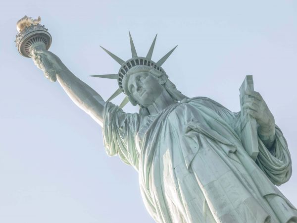 Statua della Libertà vista dal basso. Con questa carta da parati puoi portare un pezzo di New York nella tua casa.
