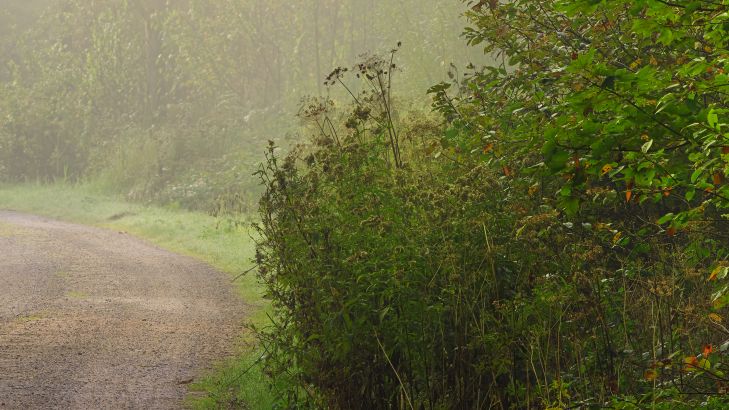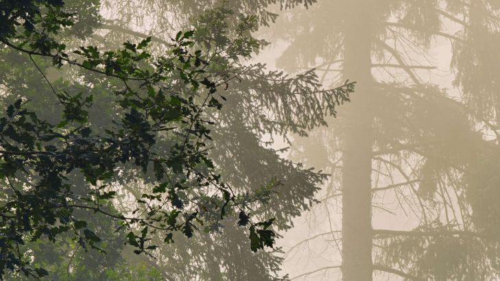 Carta da parati - Strada attraverso la foresta nebbiosa