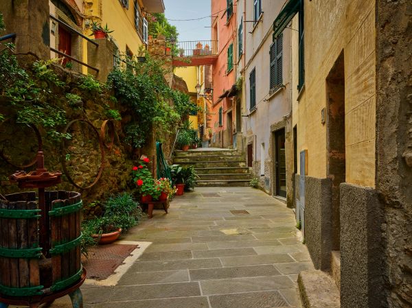 Una vecchia strada italiana con case colorate. Entrate nell'atmosfera italiana con questa carta da parati fotografica nella vostra casa.