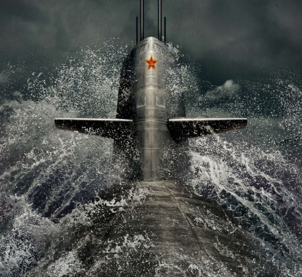 Un sottomarino che si immerge nell'acqua. Combinate questa carta da parati fotografica per esempio in una stanza per ragazzi per un'atmosfera ancora maggiore.