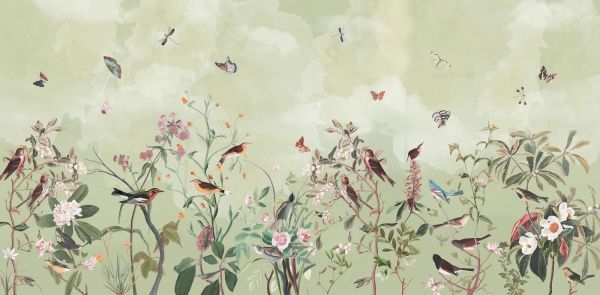 Diseños detallados con una refinada mezcla de pájaros, mariposas y flores, sobre fondos de colores suaves. Perfecto para crear un ambiente tranquilo y natural en cualquier interior.