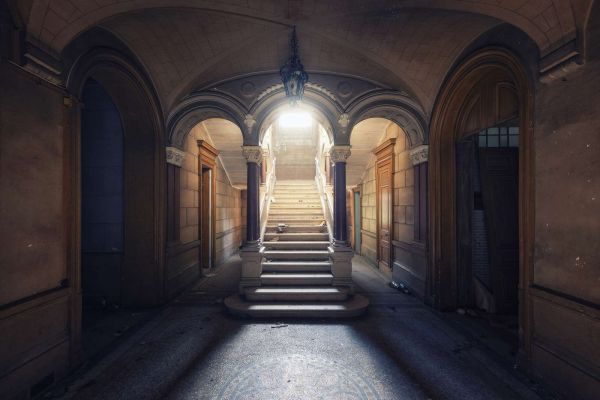 La magnifica scala di un bellissimo castello in Francia. Un tempo parte di un'azienda vinicola, di recente è stato teatro di molte feste e rave illeciti. Fortunatamente, l'architettura è sopravvissuta bene e ora è in fase di ristrutturazione.