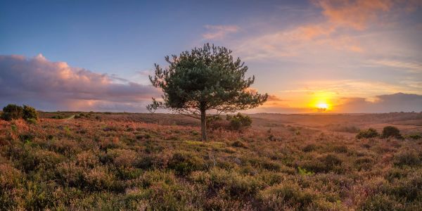 Tramonto nei pressi di un'area deserta. Il sole sta tramontando in lontananza.