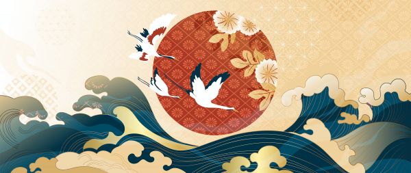 Un lussuoso tramonto con gru volanti. A causa dei colori caldi, questa carta da parati fotografica porta un'atmosfera calda nella vostra casa.