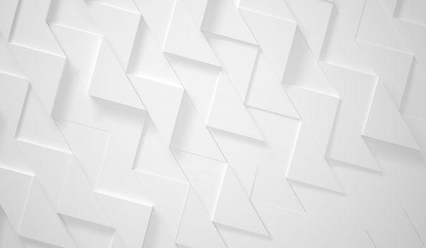 Un muro bianco con un motivo di triangoli bianchi 3D.
