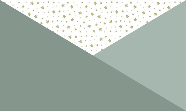 Triangoli geometrici nei toni del verde con stelle dorate poste centralmente in alto.