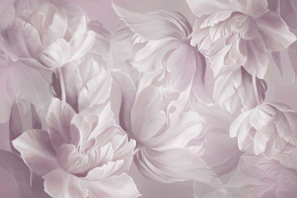 Un design floreale da sogno con eleganti tulipani in morbidi toni di rosa pallido e lilla. Le pennellate fluide conferiscono un aspetto romantico e raffinato. Le delicate tonalità di colore creano un'atmosfera calda e serena, perfetta per uno spazio elegante e rilassante.