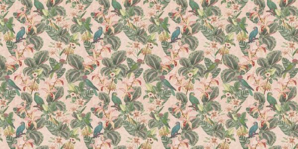 Carta da parati - Uccelli e pappagalli della giungla tropicale - rosa tenue