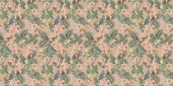 Carta da parati - Uccelli e pappagalli della giungla tropicale - terracotta