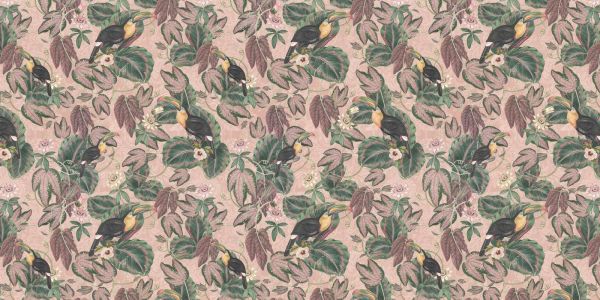 Carta da parati - Uccelli e tucani della giungla tropicale - rosa