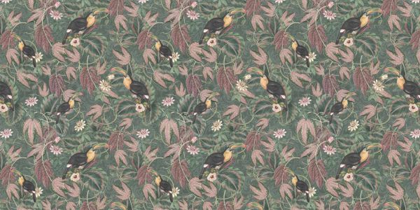 Carta da parati - Uccelli e tucani della giungla tropicale - verde scuro