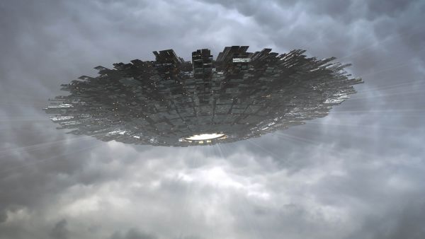 Un atterraggio di UFO. Completa la tua sala giochi con questo sfondo fotografico di un UFO.